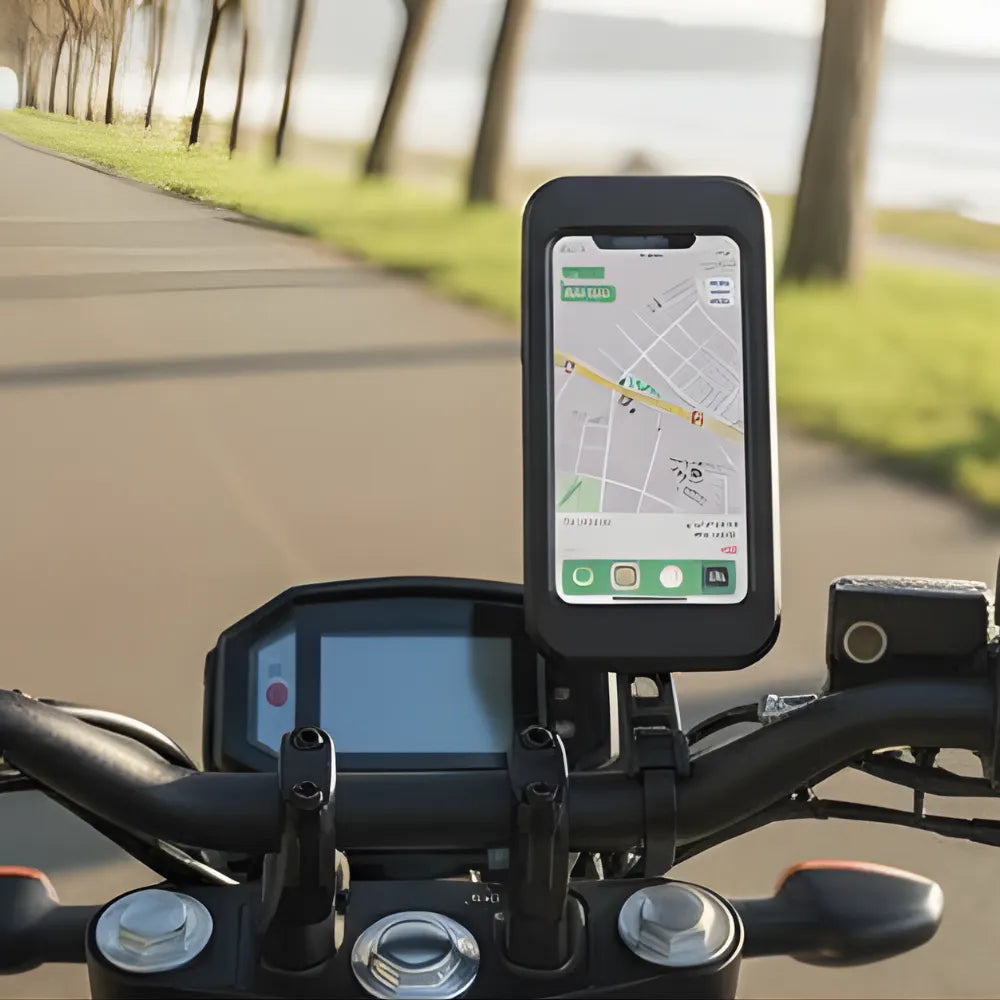 Protección total mientras conduces. Soporte impermeable ideal para bicicleta y moto.